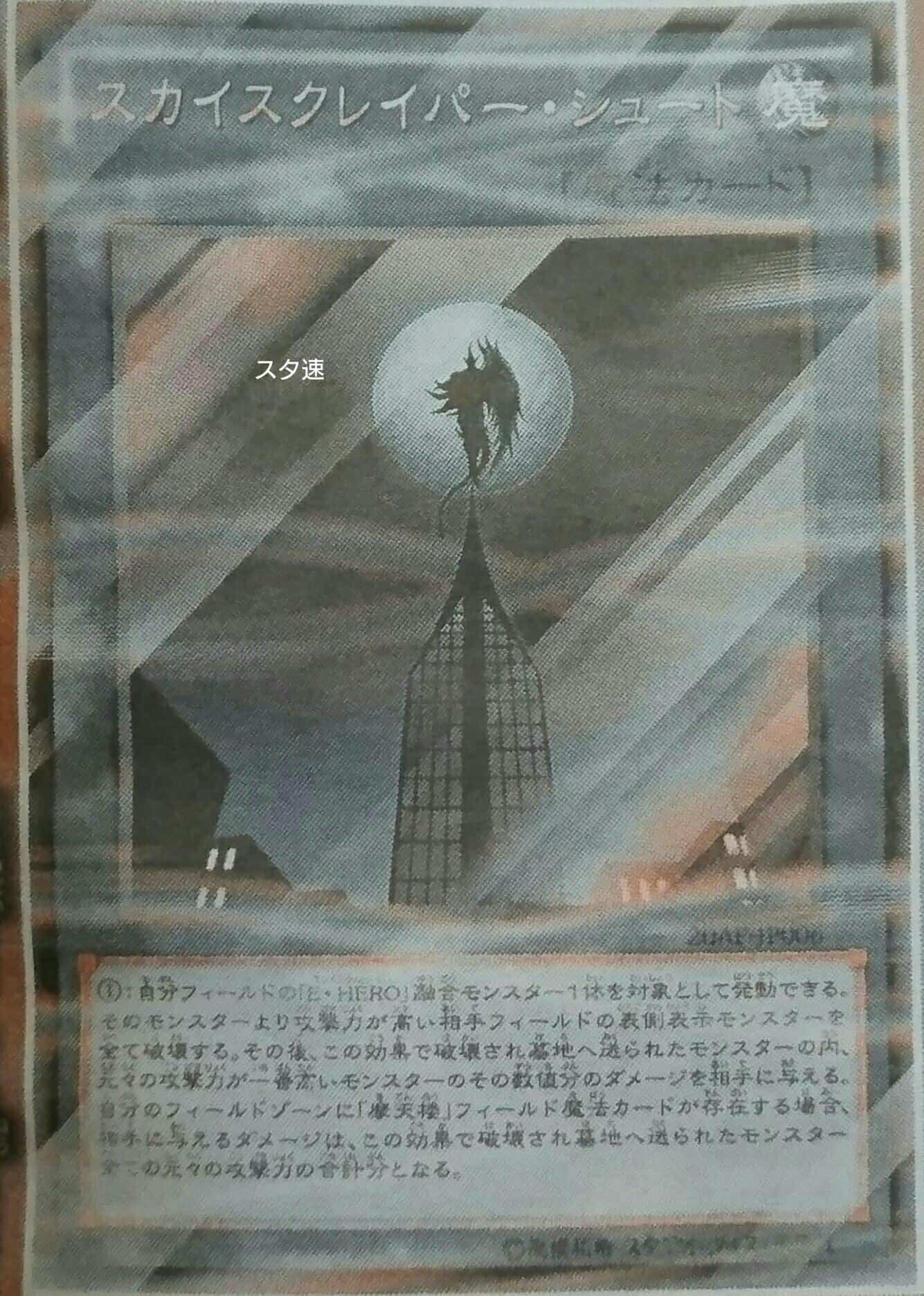 (1) Target 1 “Elemental HERO” Fusion Monster you control; destroy as many monsters your opponent controls as possible with ATK higher than that monster’s, then inflict damage to your opponent equal to the highest original ATK among monsters destroyed and sent to the Graveyard by this effect, but if a “Skyscraper” Field Spell Card is in your Field Zone, the damage inflicted to your opponent becomes equal to the combined original ATK of all monsters destroyed and sent to the Graveyard by this effect.