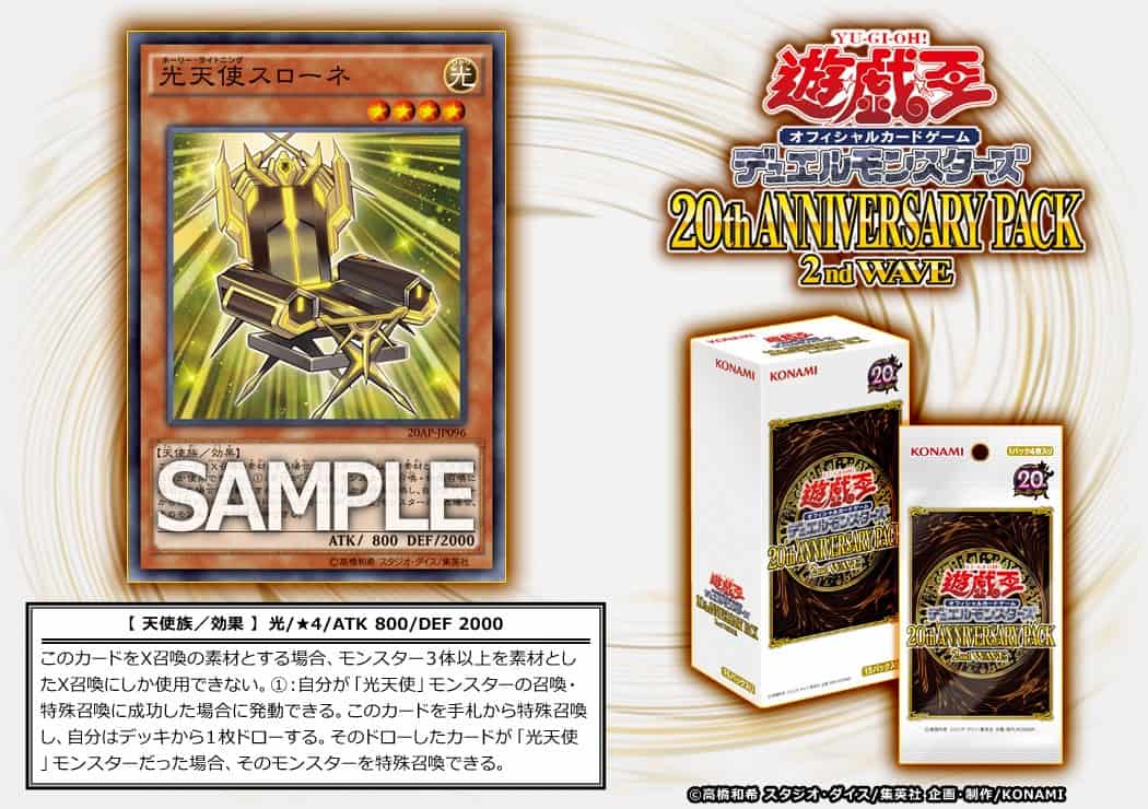 Join our Discord to discuss this article with fellow Duelists Become a Patron to support us for 12 years of all-volunteer work The Chair of “Stick and Chair” gets reprinted in 20th Anniversary Pack 2nd Wave for Japan. 20AP-JP096 光天使スローネ Star Seraph Sovereignty This card was first released as an additional Japanese World Premiere card included in Duelist Advent, the Japanese version of “Duelist Alliance”