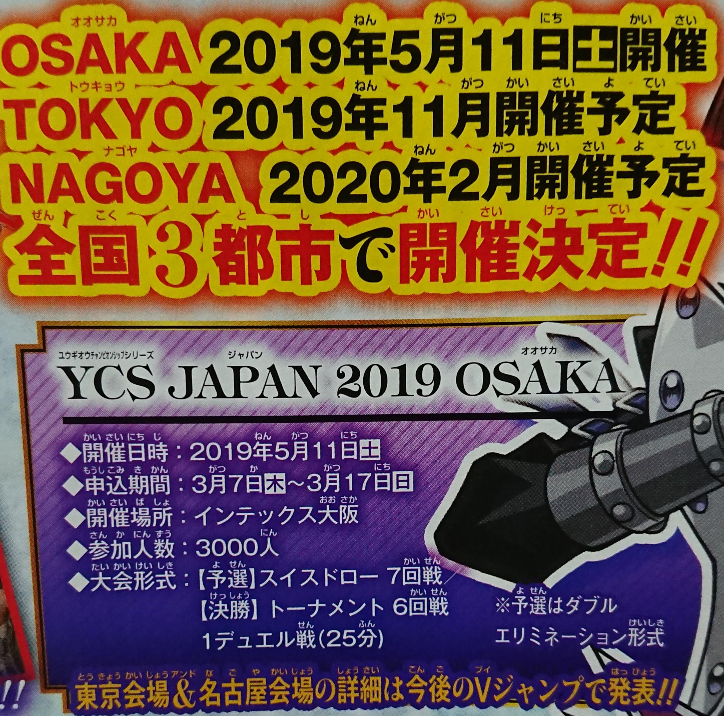 YCS Japan 2019 Osaka is confirmed for the following: