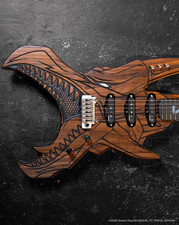 Bear Walker Industries’ have released their next hand-carved Yu-Gi-Oh! product: a Red-Eyes Black Dragon electric guitar. This guitar replicates the lines and curves of Joey Wheeler’s iconic ace monster, and only 25 will be produced.