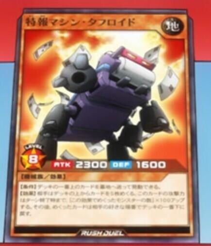Effect: Excavate the top 5 cards of your opponent’s Deck. This card gains 100 ATK [times the number of excavated monsters] until the end of the turn. Then your opponent places the excavated cards on the bottom of the Deck in the order they desire.
