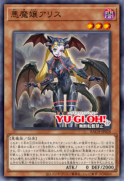 (3) If this card is Tributed, or destroyed by your opponent: You can add 1 Fiend monster whose combined ATK and DEF equal 2000 from your Deck to your hand, except “Alice, Lady of Lament”.