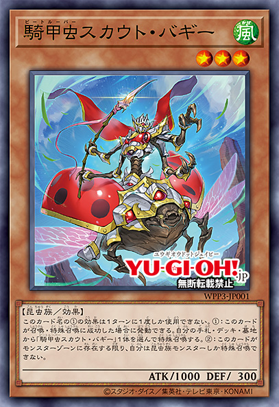 The TCG premiere theme, Beetroopers, will be arriving at the OCG via the World Premiere Pack 2022. The forced reading is still “Beetrooper”, but its written in Kanji as 騎甲虫. Individually, these read as “knight” + “armor” + “insect”. The first two seem to be a pun on 騎行 (kikou) which means “horseback riding”, and the last two for the word for “Beetle”, similar to the Inzektor theme (roughly “beetle-themed machines”).