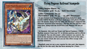 Even with the market being odd like it normally is, next week is going to be harder to pinpoint cards to talk about, as this upcoming Friday to December 1st will be the TCGplayer’s Store Credit Promotion: “This time of year, players who buy anything off of TCGplayer will get 10% from their purchases, or if you are a TCGplayer Subscriber, you will receive 13% (12% base plus 1-3% monthly loyalty bonus)”. So with stating this, I would love to take suggestions for next week’s article in the comments below! With YCS Merida, Mexico, this weekend as well, I will predict that either Mitsurugi Yummy or Branded Dracotail will take the win, but we will see what happens this weekend. I do wish everyone luck who is attending, and may the best duelist win like always! And for my fellow people in the United States, I hope everyone has a safe and joyous Thanksgiving this year.