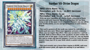 Even with the most recent reprint being from Battles of Legend: Monster Mayhem, Stardust Sifr Divine Dragon is demanding $2 and above for each copy, thanks to the new cards supporting Synchron, and Blue-Eyes, another notable Deck that uses this card, is still doing great in the current rogue category.