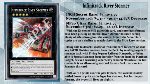 Even with Flying Pegasus Railroad Stampede only being from Legendary Duelists: Sister of the Roses and Legendary Season 2, and Urgent Schedule being in the previously mentioned set and having an additional reprint in Maximum Gold: El Dorado, it’s been more than enough time to reprint these cards in a new rarity and import the Alternate Artwork for Flying Pegasus. Then with Infinitrack River Stormer, this card has only been seen in The Infinity Chasers and 2020 Tin of Lost Memories. It’ll be the perfect time to reprint this card soon, with some using it with the K9 package to search for any EARTH Machine in the game.