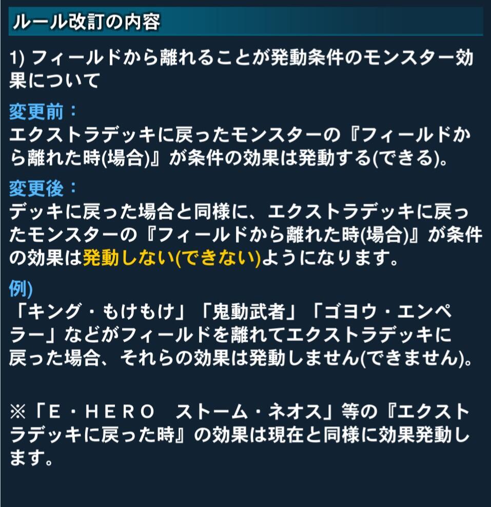 • (Japanese: monsters such as “Elemental HERO Storm Neos” with effects with the text “When returned to the Extra Deck” will still activate as before)