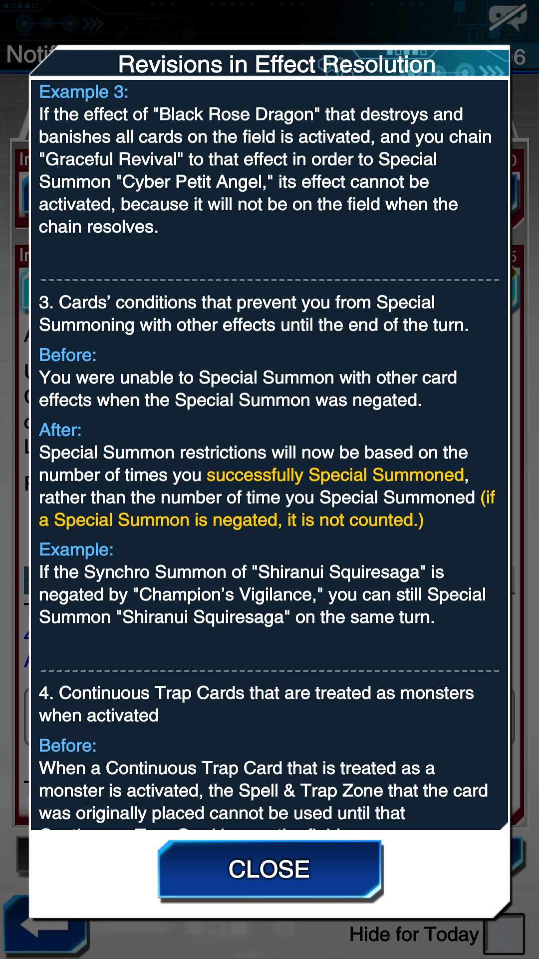 Special Summon restrictions will now be based on the number of times you successfully Special Summoned, rather than the number of time{s} you Special Summoned (If a Special Summon is negated, it is not counted.)