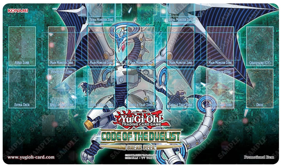 First Off, the Mat for the “Code of the Duelist” Sneak Preview is one themed around Yusaku’s upcoming ace monster, Firewall Dragon!