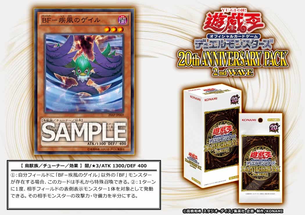 Join our Discord to discuss this article with fellow Duelists Become a Patron to support us for 12 years of all-volunteer work One of Crow’s classic Tuners gets reprinted in 20AP’s 2nd Wavve. 20AP-JP069 BF-疾風のゲイル Blackwing – Gale the Whirlwind The last time it was reprinted was in “Booster Special: Tribe Force”, which is the Japanese Version of The Hidden Forces Source