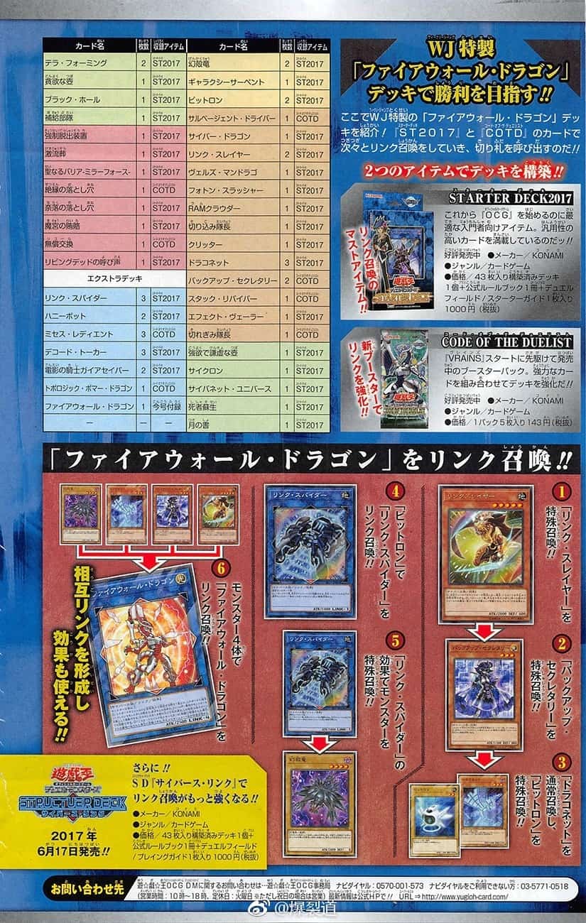 A suggested Deck Recipe from Shueisha’s Jump staff, for their Firewall Dragon promo along with cards from Starter Deck 2017 and Code of the Duelist