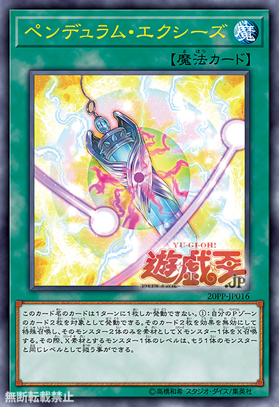 (1) Target 2 cards in your Pendulum Zones; Special Summon them (but their effects are negated), and if you do, immediately after this effect resolves, Xyz Summon 1 Xyz Monster using only those 2 monsters as material. You can treat the Level of 1 those materials as the same Level as the other monster during this Xyz Summon.