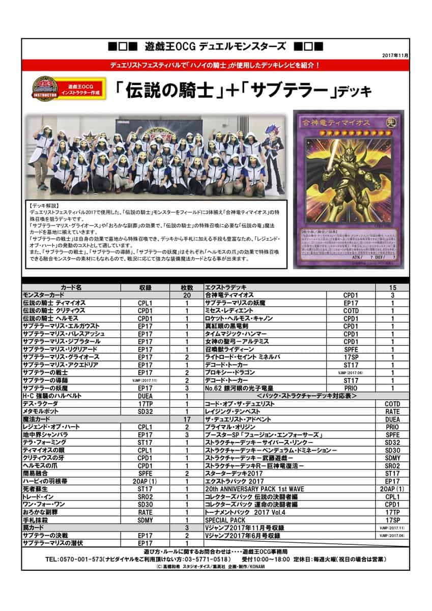 A Deck used at Duelist Festival 2017 that seaks to Special Summon “Timaeus the Knight of Destiny” by gathering 3 “Legendary Knight” monsters on the field.
