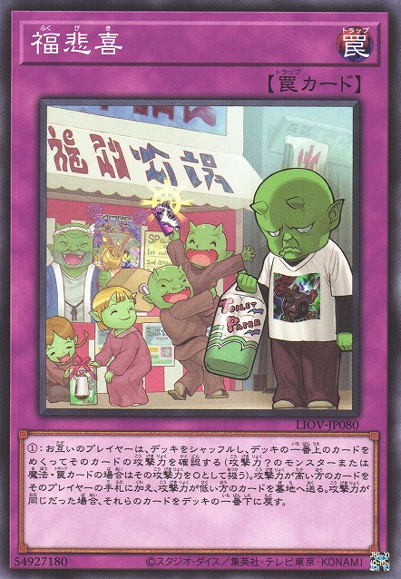 Note: ‘fukubiki’ means lottery basically, but the card replaces the biki (draw) part with “sadness” and “happiness”. Since the TCG doesn’t seem to like translating the names of the cards in Goblin Kid’s Depressing Adventures, we’re leaving it as it is on purpose.