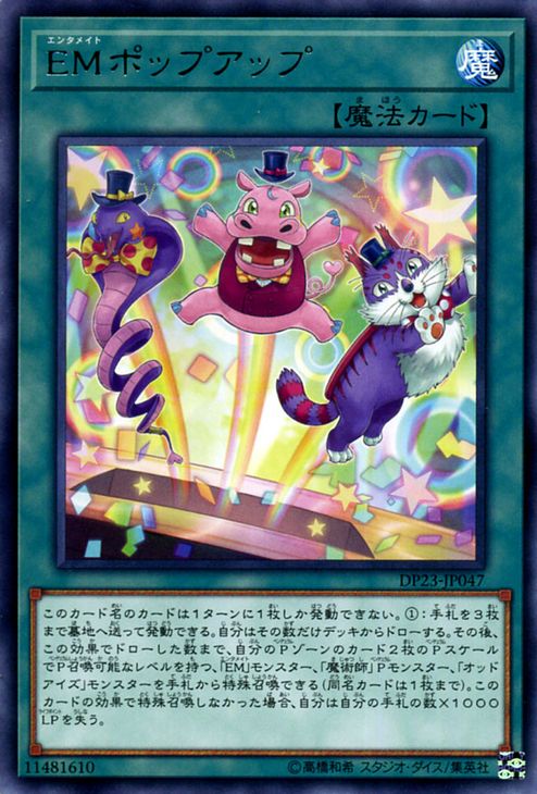 (1) Send up to 3 cards from your hand to the GY; draw that many cards, then you can Special Summon “Performapal” monsters, “Magician” Pendulum Monsters, and/or “Odd-Eyes” monsters with different names from your hand, up to the number you drew, whose Levels are between (exclusive) the Pendulum Scales of 2 cards in your Pendulum Zones (if there are 2), also, if you do not Special Summon any monsters with this effect, lose 1000 LP for each card in your hand.