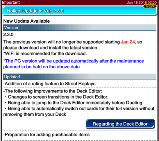 You can now also edit your Deck before you Duel a character, in the main Duel Worlds.