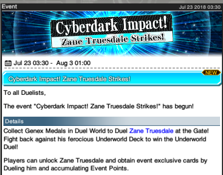 Unlocking Zane and obtaining Cyberdark Dragon are the main goals of the event.