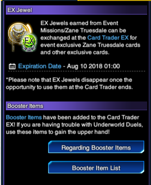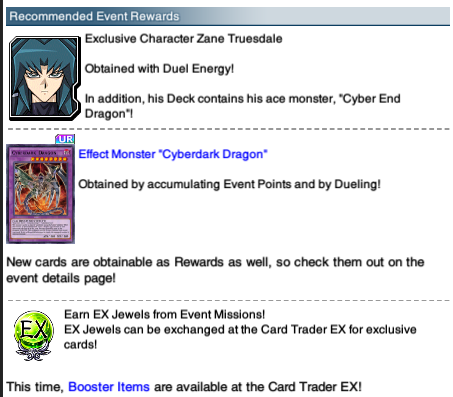 Also by winning points in the event, and spending at the Card Trader EX you can get Booster Items.