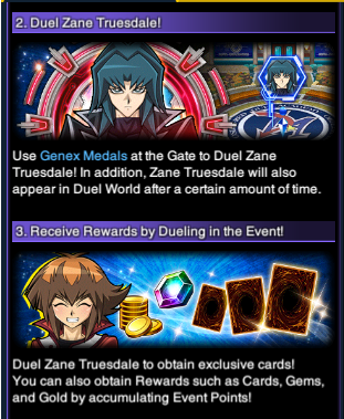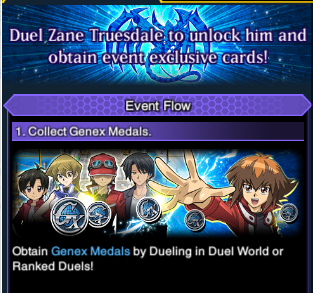 It’s a standard “Get Items and Spend them in Duels at the Event Gate” kind of event, with Zane being the unlock target.