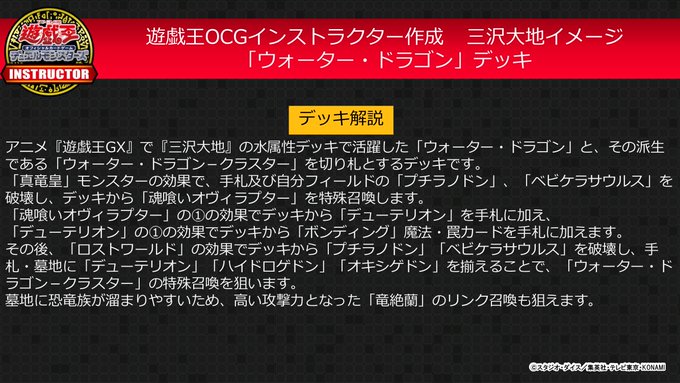 A Deck uses “Water Dragon” and its derivation “Water Dragon Cluster” as its ace ccards, which are the basis of the WATER Deck used by “Bastion Misawa” in the “Yu-Gi-Oh! GX” anime.