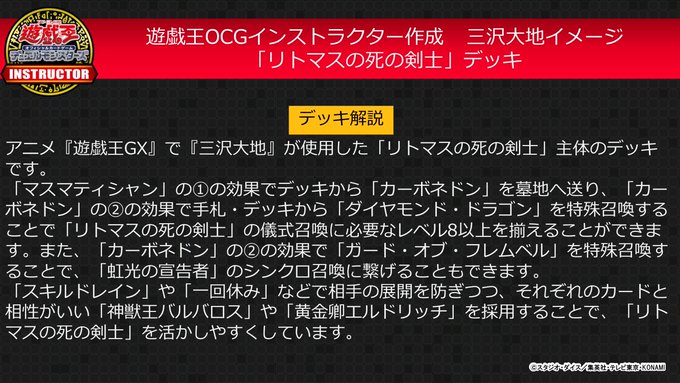 A Deck centered around the “Litmus Doom Swordsman” used by Bastion Misawa in the “Yu-Gi-Oh! GX” anime.