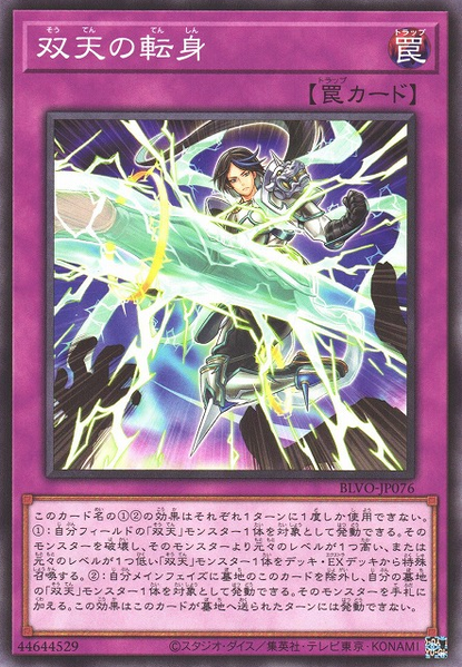(1) Target 1 “Dual Avatar” monster you control; destroy that monster, and if you do, Special Summon, from your Deck or Extra Deck, 1 “Dual Avatar” monster whose original Level is either 1 higher or 1 lower than the destroyed monster’s.