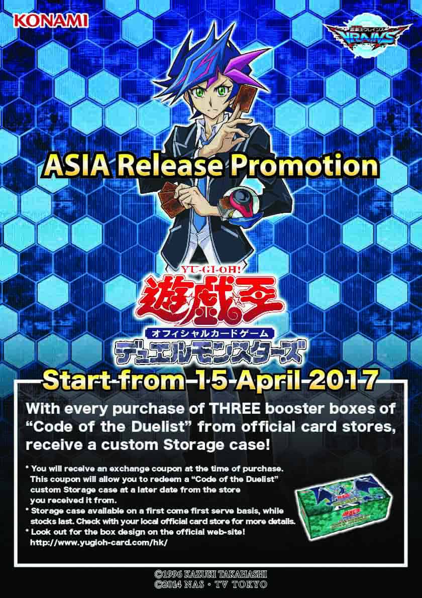 As first mentioned here, in Asian stores outside of Japan, if you buy 3 boxes of the new booster “Code of the Duelist” (not a Card of the Day, as we keep informing everyone.), you can get a coupon that you can turn in at a later point for a Storage case.