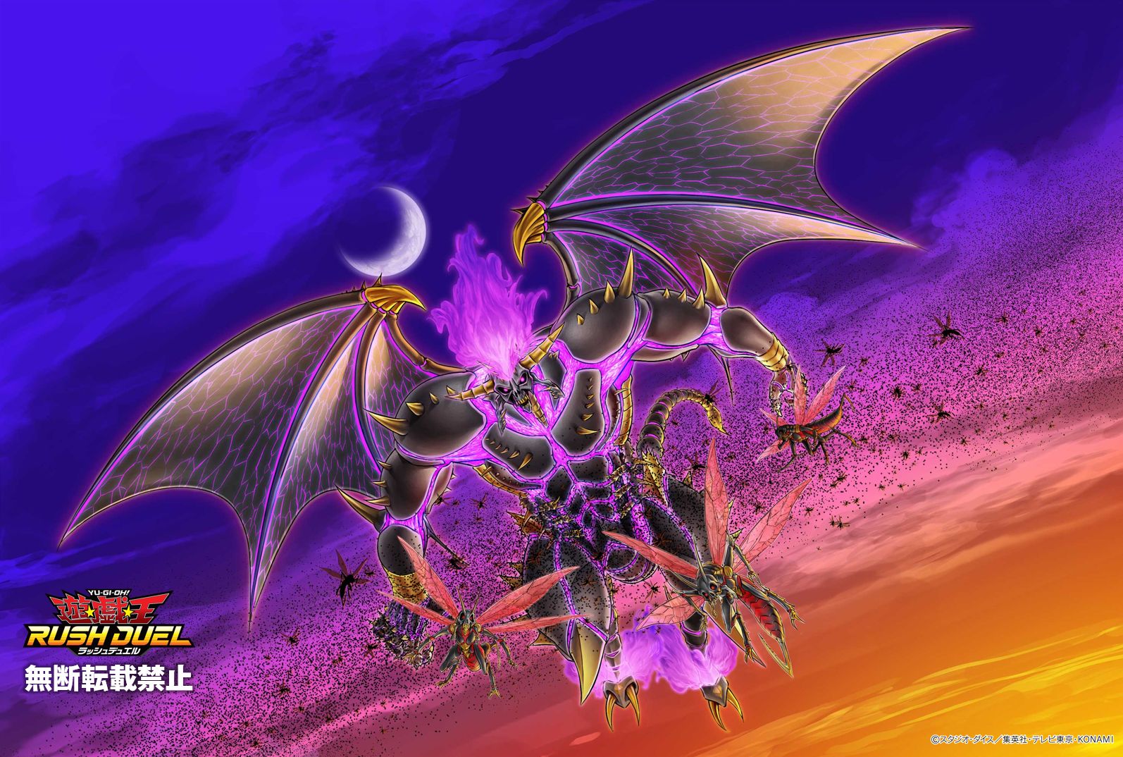 A plague upon your house. The full artwork of the standard version of “Abad, the Negahell Emperor” features it flying in an evening sky with an army of locust-like demons. Source: X (Twitter)