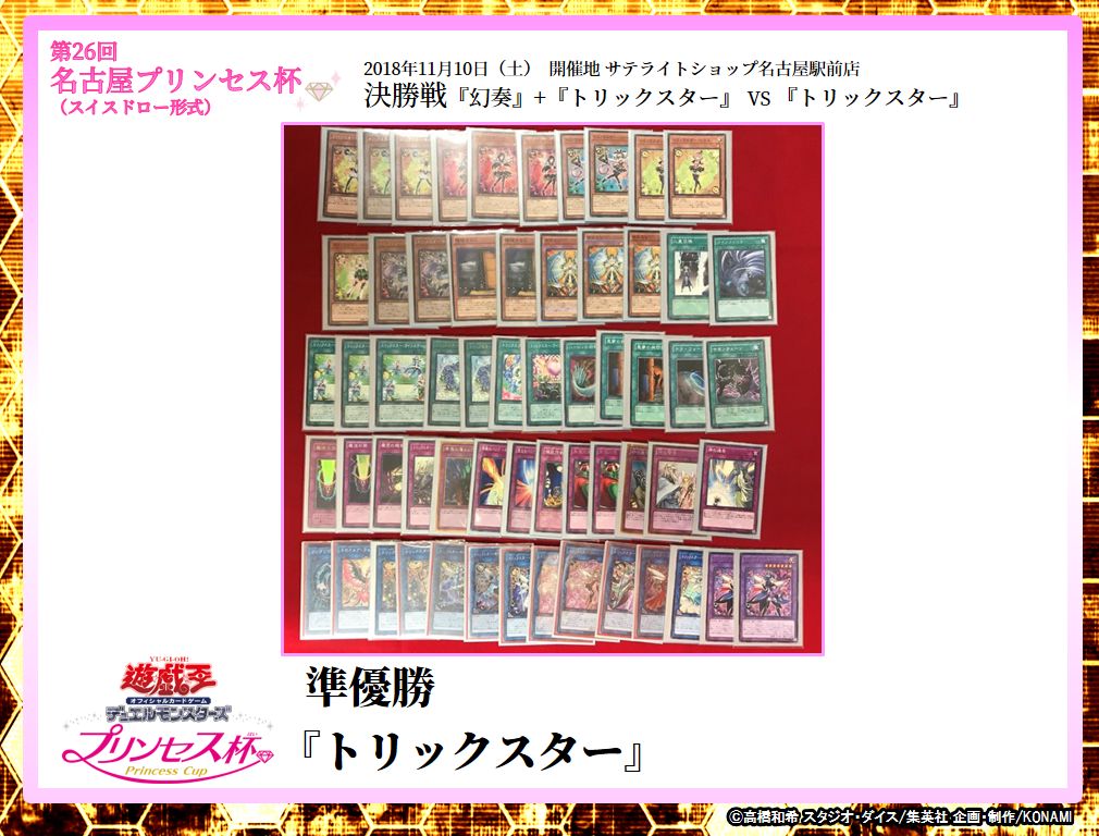The Princess Cup is a tournament at the Female Duelist Meeting. The Female Duelist Meeting is an regular event held across Japan, hosted by Konami, for the intent of making it easier for girls and women to get into the Yu-Gi-Oh! card game by allowing them to work up from Demos to Casual Play to Tournament Events at their own pace, in a safe play environment.