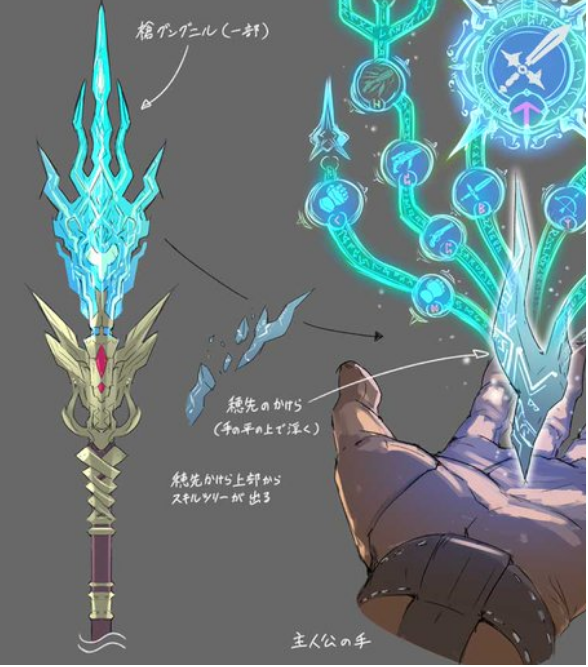 Note: At the time we translated the name, the word 穂先 (tip, point, spearhead) could have been a number of different things, and we did not have any notion that this fragment came from the head of a spear. “Spearhead of the Mysterune” may be a more complete name that includes this additional lore.