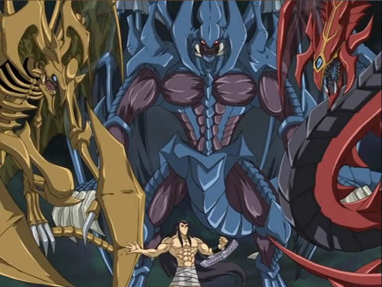 Q: How did the “Sacred Beast” cards come to be, and what was the reason in-universe for them being so incredibly powerful? Also, is there any sort of motif when it comes to their names and effects?