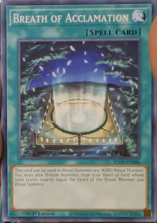This card can be used to Ritual Summon any WIND Ritual Monster. You must also Tribute monsters from your hand or field whose total Levels exactly equal the Level of the Ritual Monster you Ritual Summon.