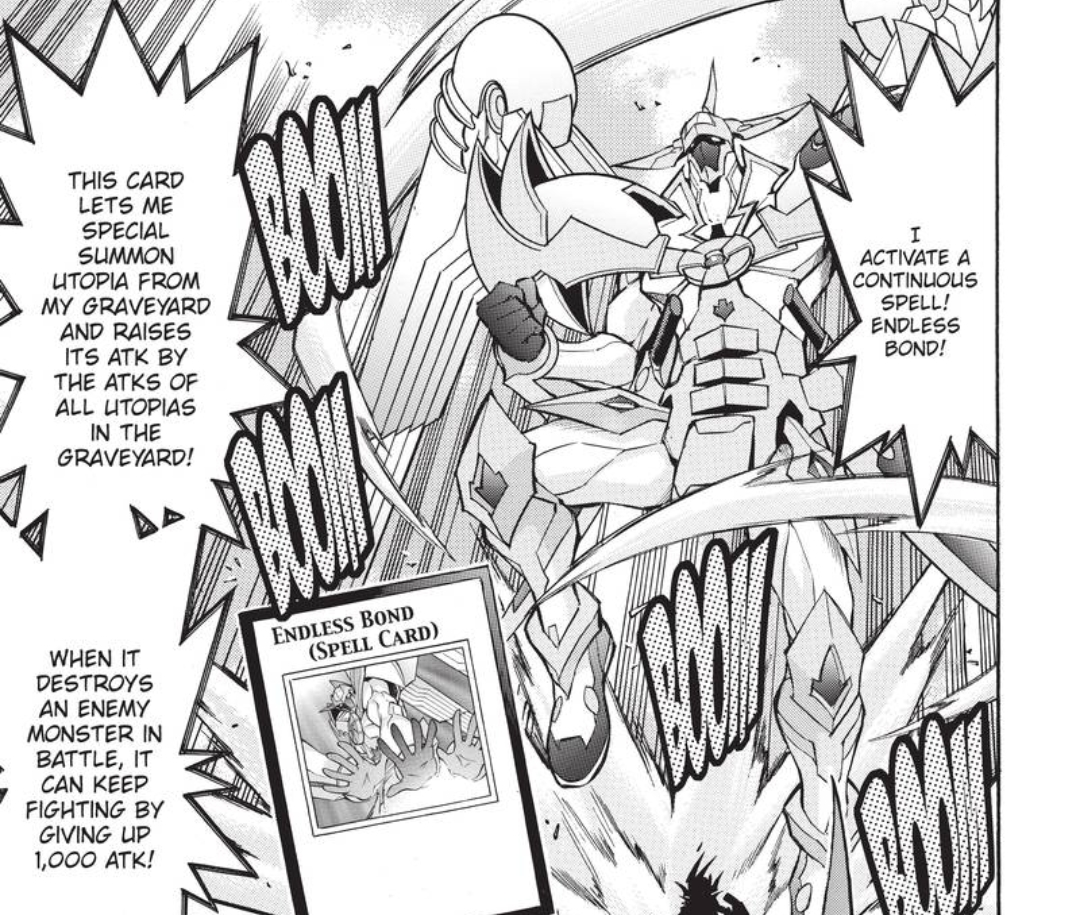 (2) When your attacking “Utopia” or “Utopic” Xyz Monster whose original Attribute is LIGHT destroys an opponent’s monster by battle: You can make that monster you control lose 1000 ATK, and if you do, it can make another attack in a row.