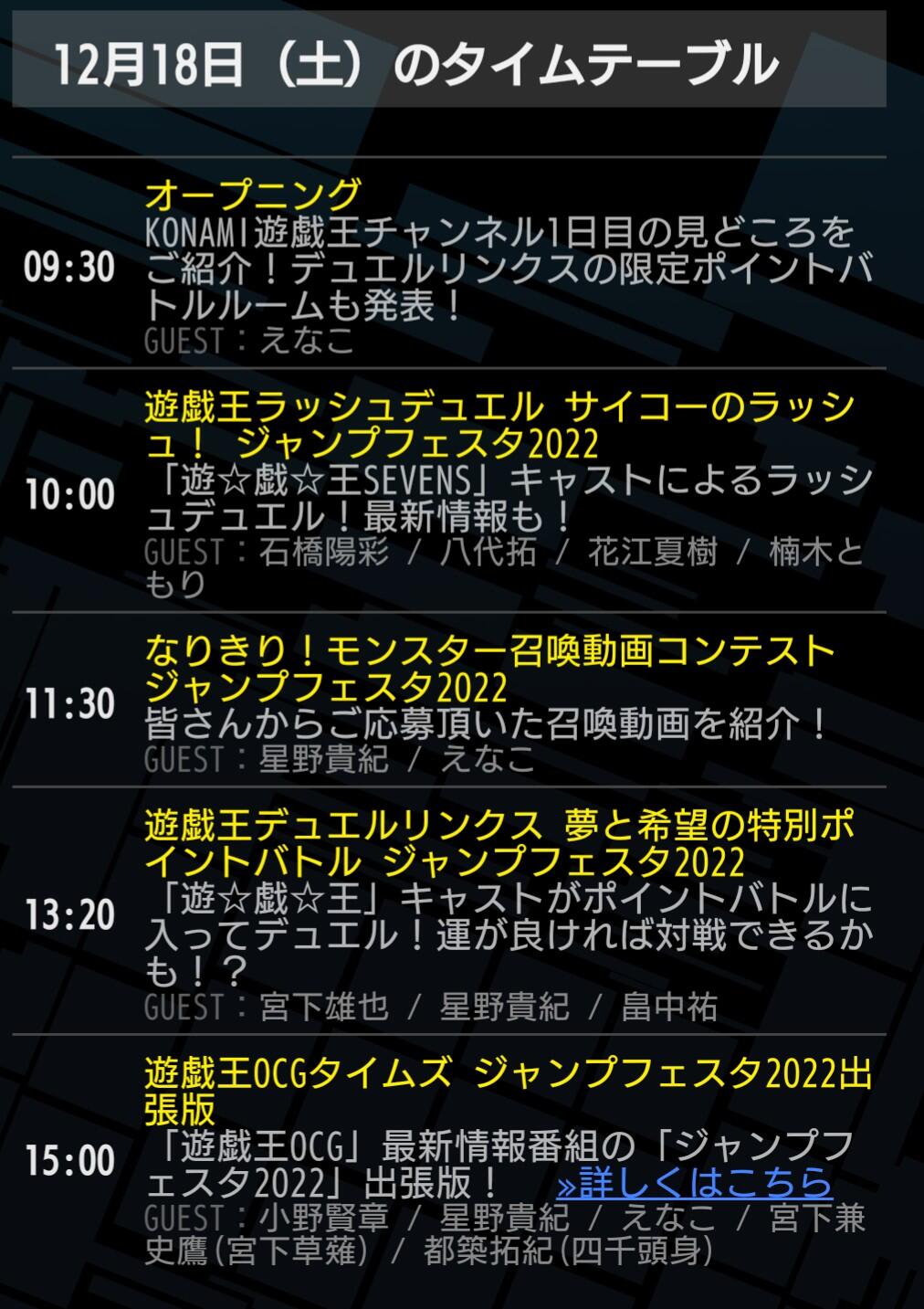 3 PM JST will be the Yu-Gi-Oh! Official Card Game Times Jump Festa Edition