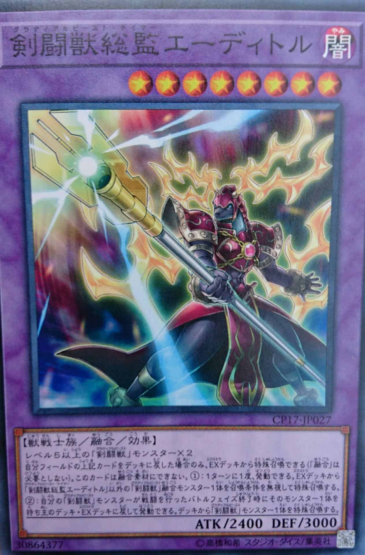 (1) Once per turn: You can Special Summon 1 “Gladiator Beast” Fusion Monster from your Extra Deck, ignoring its Summoning conditions, except “Gladiator Beast Tamer Editor”.