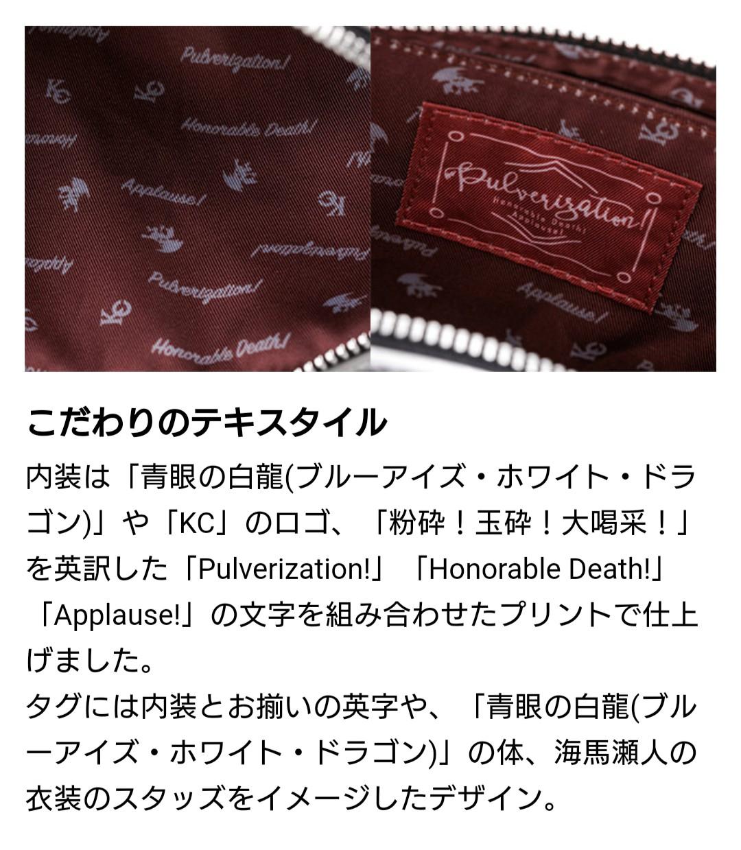 KC Logo and Blue-Eyes White Dragon iconography are included inside, along with Kaiba’s favorite quote in the form of “Pulverization!” “Honorable Death!” “Applause!” scattered through the bag’s interior.