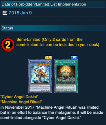 - However, in turn, Machine Angel Ritual will be going up from 1 to 2 copies per Deck.