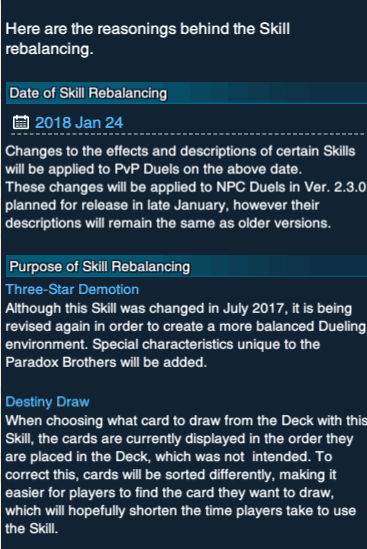 - Destiny Draw will have its selection menu order revised to make it less of a hassle to use.