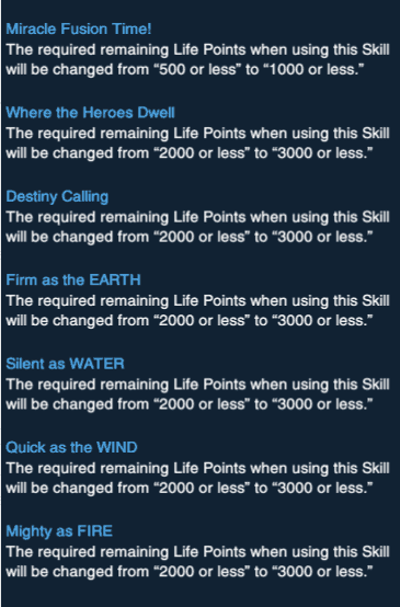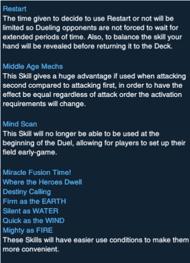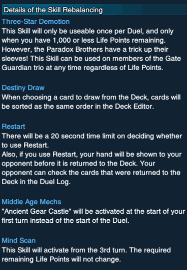 - The LP cost of various GX era skills are being rebalanced to be easier to activate.