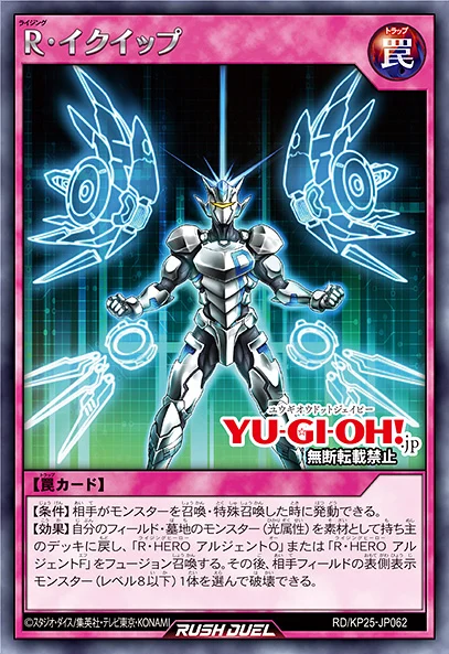 【EFFECT】 Choose 1 card on your opponent’s field and destroy it. Then, you can Fusion Summon “Rising HERO Argent O” by shuffling monsters from your Graveyard into the Deck as material.