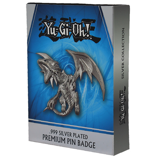 There’s a Premium Pin Badge of “Blue-Eyes White Dragon” made of %99.9 percent pure silver, for $39.99, and a silver-foil print of the card.