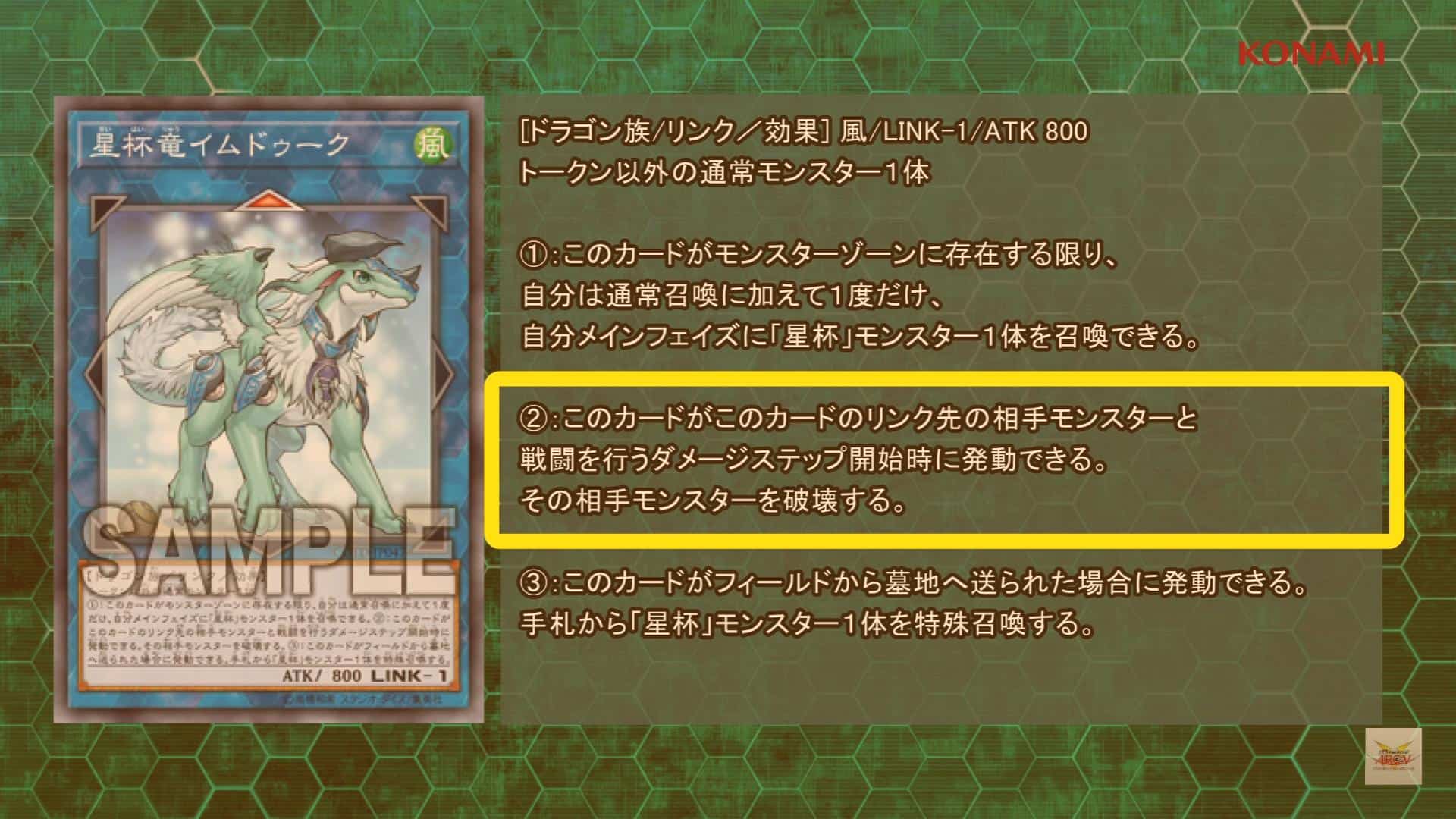 (2) At the start of the Damage Step, when this card battles an opponnent’s monster in this card’s linked Zone: You can destroy that opponent’s monster.