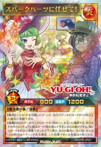 【EFFECT】 Increase this card’s Level by 3 until the end of the turn, then you can choose 1 “Sparkhearts Girl” or 1 “I’m Having Trouble With My Fields Being Destroyed!” in your Graveyard and add it to the hand. For the rest of this turn, you cannot attack with monsters, except FIRE Spellcaster monsters.
