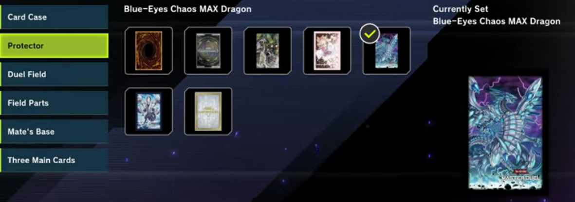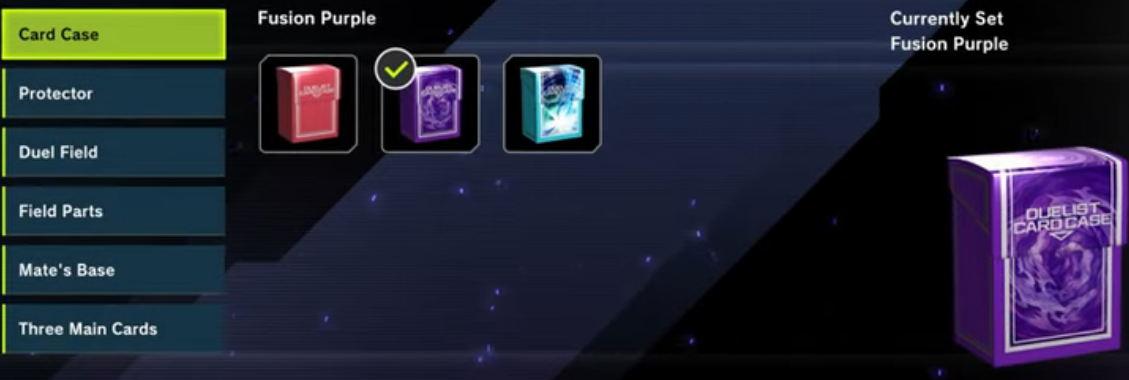 We can see two other cosmetics in that menu: field parts and mate base. The mate base should be self explanatory. As for the field parts, from the Deck selection screen we can see:
