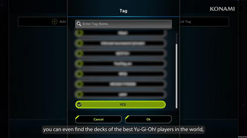 Deck can also have tags and while most are blurred out, the video highlights the possibility of finding Decks from YCS champions with this tag.