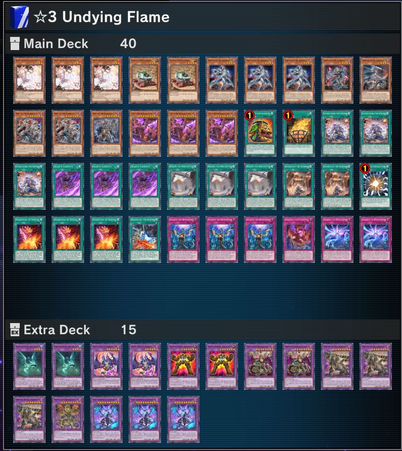 This “Ashened” Deck is ideal for taking on fateful battles. Use the effect of “Veidos the Eruption Dragon of Extinction” to Special Summon it to your opponent’s field and set “Ashened to Endlessness”. From the next turn on, use the effect of “Ashened to Endlessness” to Fusion Summon “Veidos the Dragon of Endless Darkness”, then use the effect of “Veidos the Eruption Dragon of Extinction” after it is sent to the Graveyard to decimate monsters on the field.”