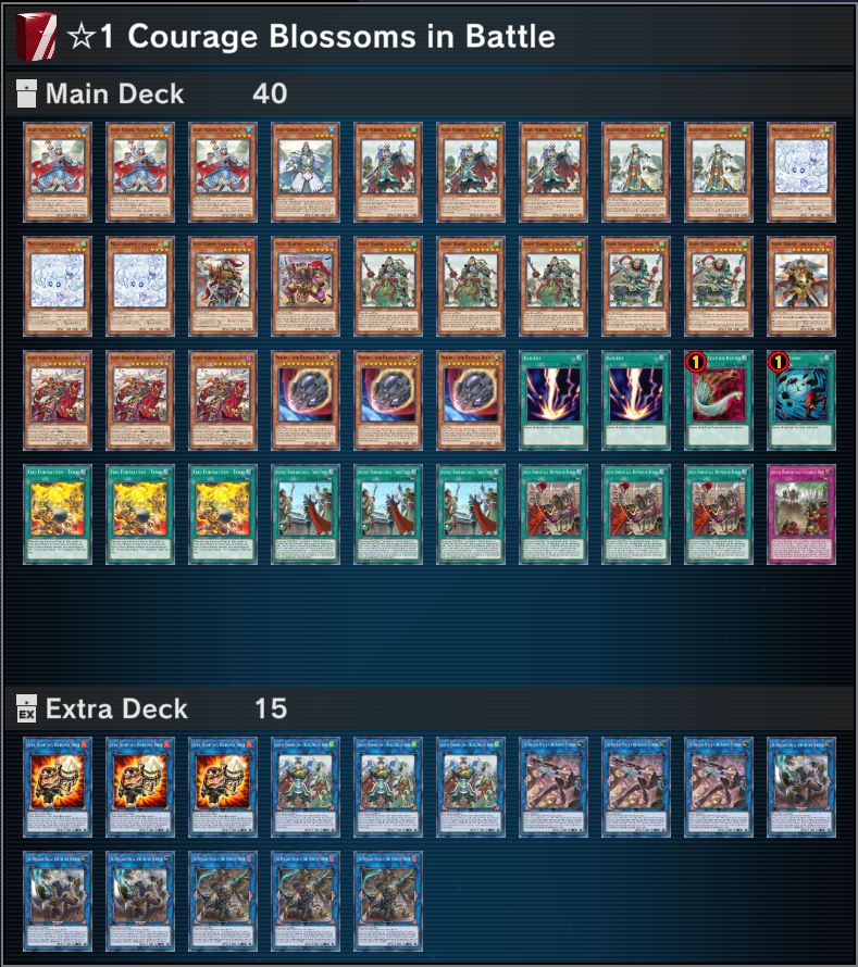 A “Ancient Warriors” Deck that specializes in aggressive tactics. The first step is to activate “Ancient Warriors Saga – Three Visits” then Summon “Ancient Warriors – Masterful Sun Mou” in order to add a dfiferent “Ancient Warriors” monster to your hand. Use the effect activation cost of “Ancient Warriors – Masterful Sun Mou” for “Ancient Warriors Saga – Three Visits”, and add monsters to your hand that are easy to Special Summon – such as “Ancient Warriors – Ingenious Zhuge Kong” – so you can easily make your future gambits. Continue all the way to “Ancient Warriors Oath – Double Dragon Lords”, then strike once your hand and field are in order!”