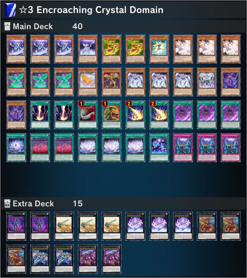 This Deck specializes in going second to quickly decide battles. Aim to utilize cards that will allow you to add a wealth of “Tistina” cards to your hand and set yourself up to place “Crystal God Tistina” and “Demigod of the Tistina” on the field. If you Special Summon “Tistina, the Divinity that Defies Darkness” after using the effect of “Crystal God Tistina”, you can send all of the cards on your opponent’s field to the Graveyard. This will give you the ability to instantly end the Duel.”