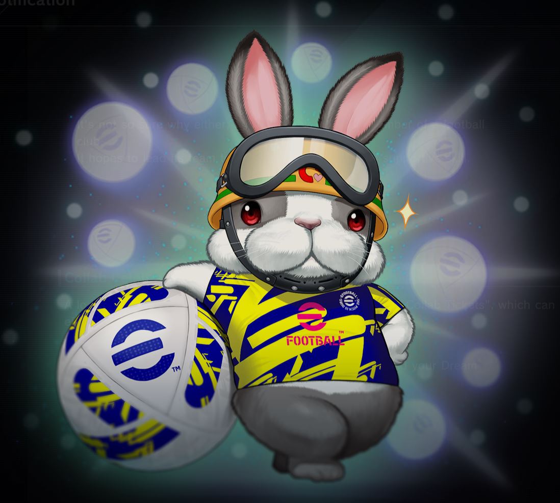 “It’s not so sure why either, but the rabbit is now a member of a football club. It hopes to lead its team to victory with all its natural supportive skill.”
