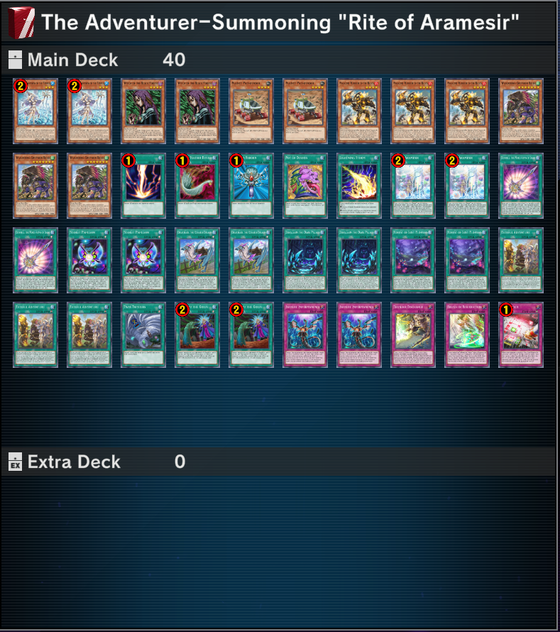 “A Deck centered around “Adventurer Token” and the effects of various cards. If an “Adventurer Token” is not on your field, the battle cannot begin. First, let’s try to activate “Rite of Aramesir”. If you don’t have it in your hand, you can use the effect of “Water Enchantress of the Temple” instead.